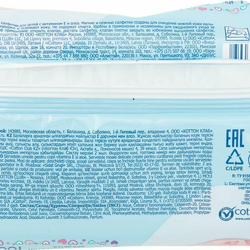 Влажные салфетки для детей 60шт/уп. AURA ULTRA COMFORT (Коттон Клаб)арт.8106