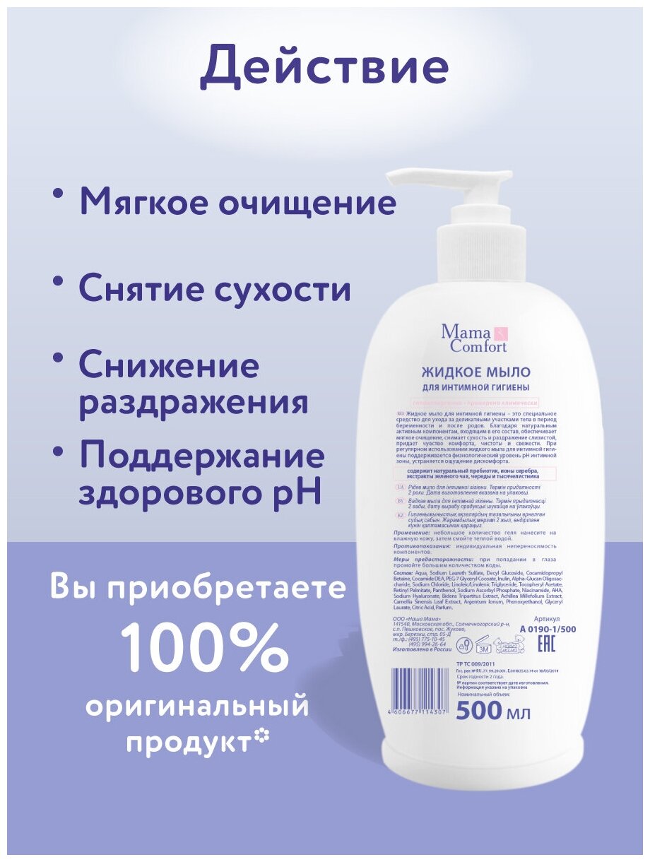 Mama Comfort, Мыло жидкоe для интимной гигиены для беременных, 500мл.