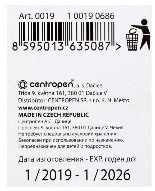 Centropen Набор картриджей для перьевых ручек 6 штук Centropen 0019/06, фиолетовые интересное: