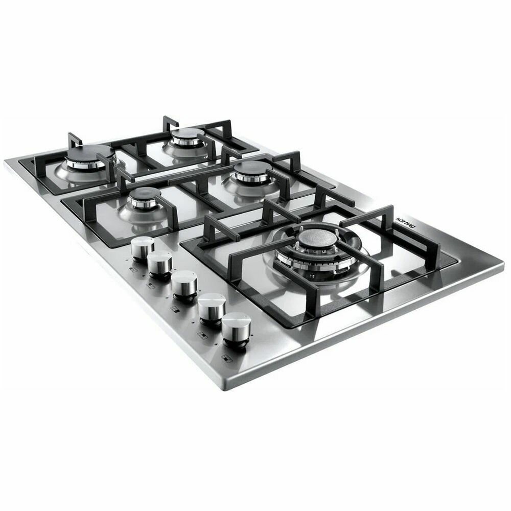 Газовая варочная панель Korting HG 997 CTX, нержавеющая сталь, 90 см, 5 конфорок, регулировка пламени, газ-контроль, электроподжиг, чугунные держатели для посуды, экспресс-конфорка, безопасное управление, подставка WOK+адаптер для кофейника