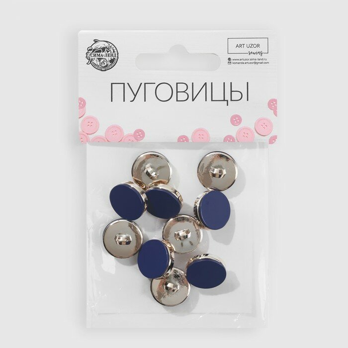 Набор пуговиц на ножке круг d15мм 10шт пластик матовый синий/золотой АУ 7386409