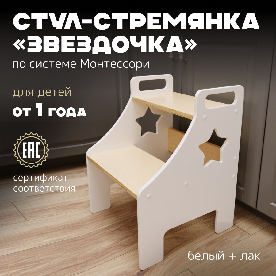 Купить Детский стул стремянка белый + лак , ступенька "Звездочка" PAPPADO