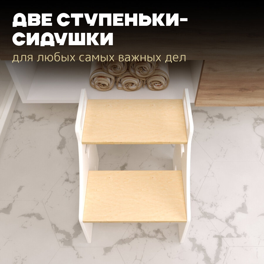 Детский стул стремянка белый + лак, ступенька "Уточка" PAPPADO
