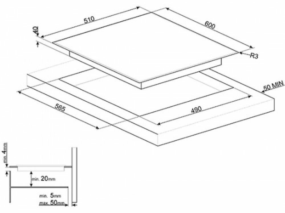 Встраиваемая варочная панель SMEG/ Электрическая, Стеклокерамическая варочная панель, 60 см, без рамки, черный