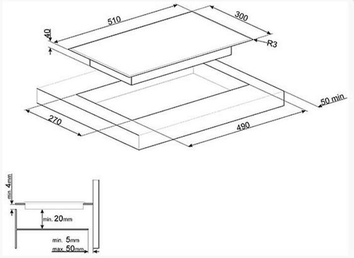 | Размеры конфорок | конфорка диаметром 14,8 см, конфорка диаметром 12,4 см, с круглой зоной расширения 18,4 см |