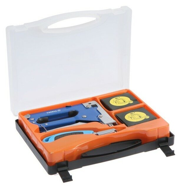 Степлер мебельный в кейсе тундра типы скоб 140/28/300 4 - 14 мм + скобоудалитель скобы