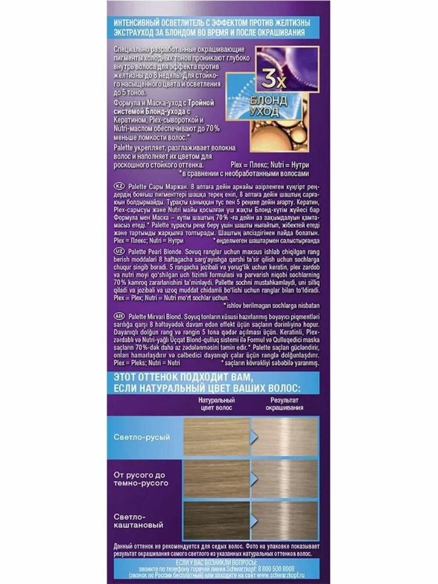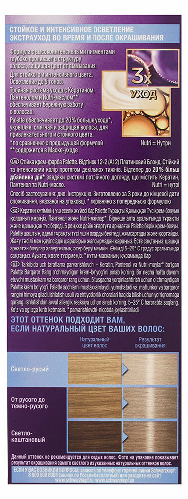 СохранитьPalette Интенсивный цвет Стойкая крем-краска для волос, A12 12-2 Платиновый Блонд, 110 мл интересное: