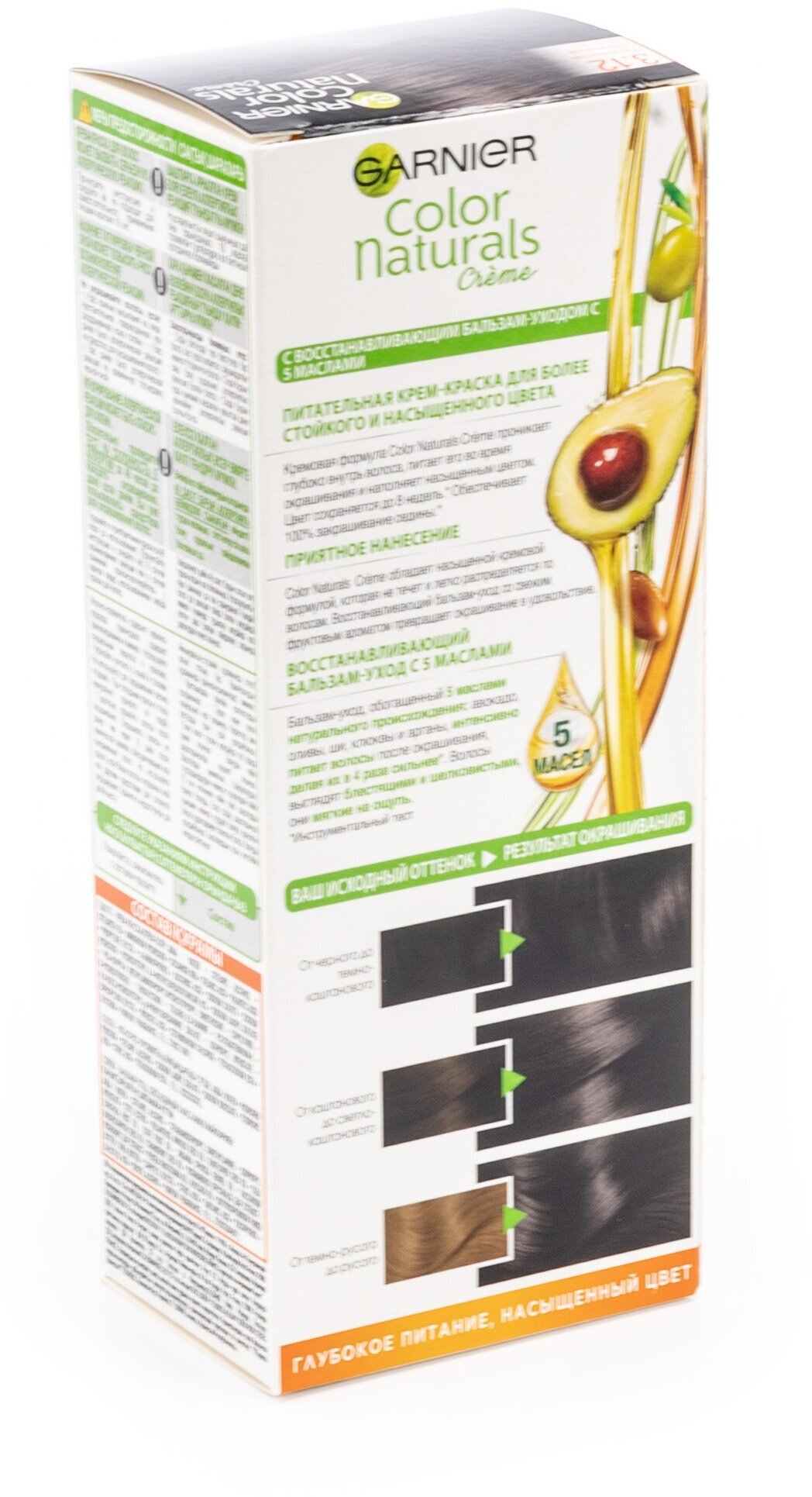 Крем-краска для волос Garnier Color Naturals с 3 маслами, тон 4.12, Холодный Шатен