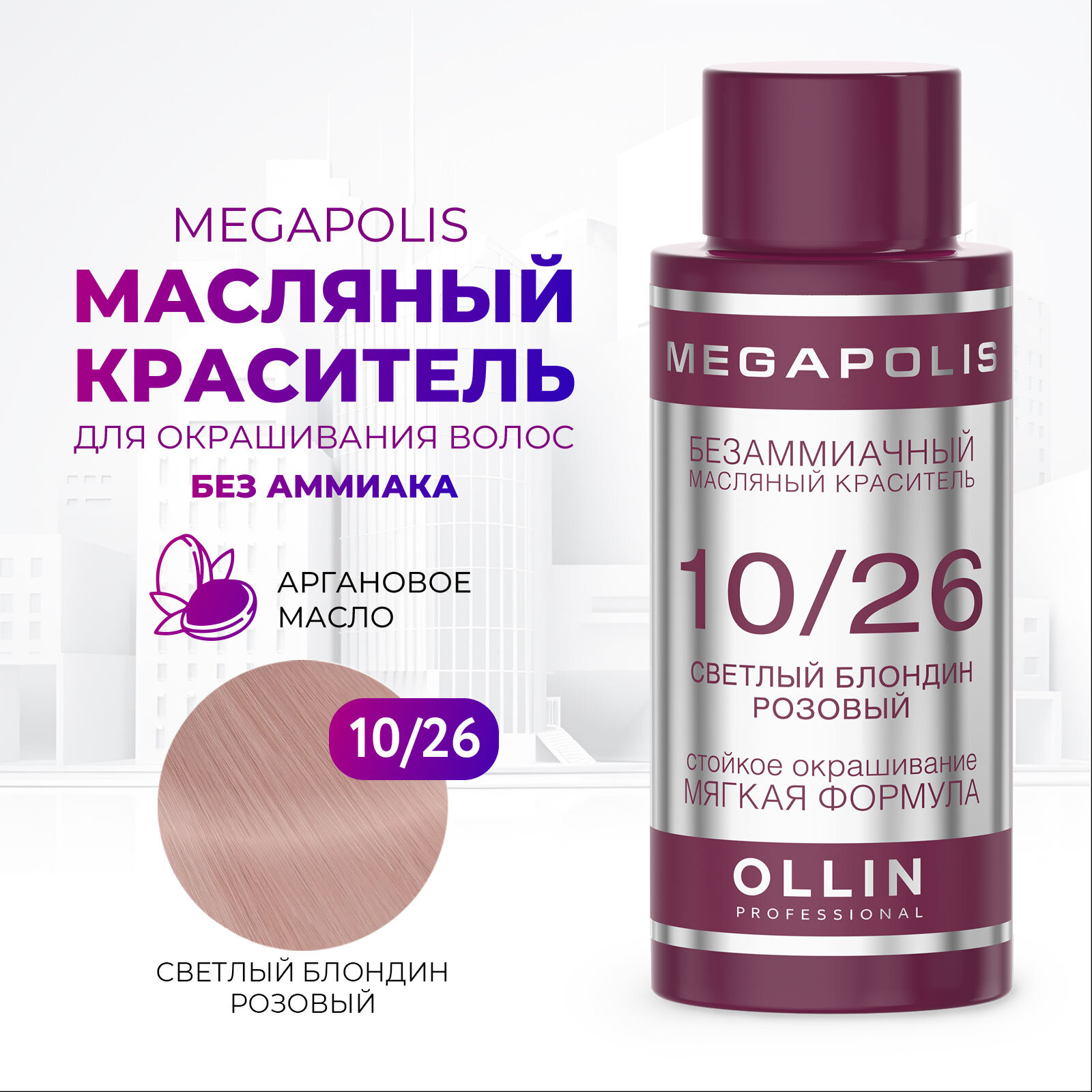 Купить OLLIN Professional Megapolis безаммиачный масляный краситель, 10/26 светлый блондин розовый, 50 мл
