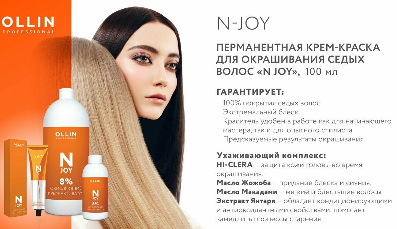 Набор N-JOY для окрашивания волос OLLIN PROFESSIONAL: крем-краска 9/11 блондин интенсивно-пепельный + крем-активатор 4 %, 100+100 мл