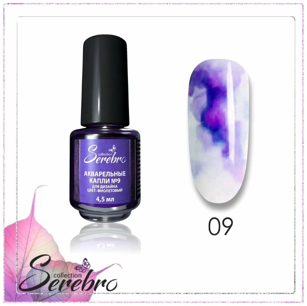 Акварельные капли для маникюра Serebro №9 для дизайна ногтей, фиолетовый, 4,5 мл
