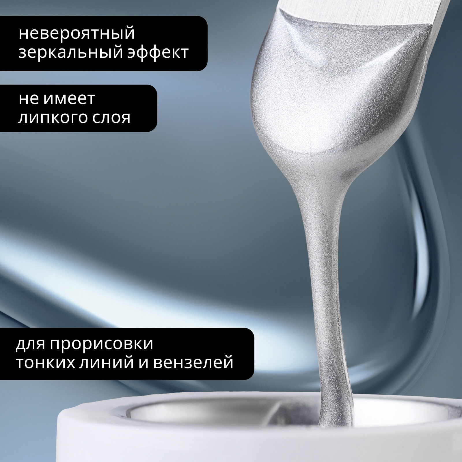 AE96 Liquid Steel гель-краска серебро с зеркальным эффектом 5 гр