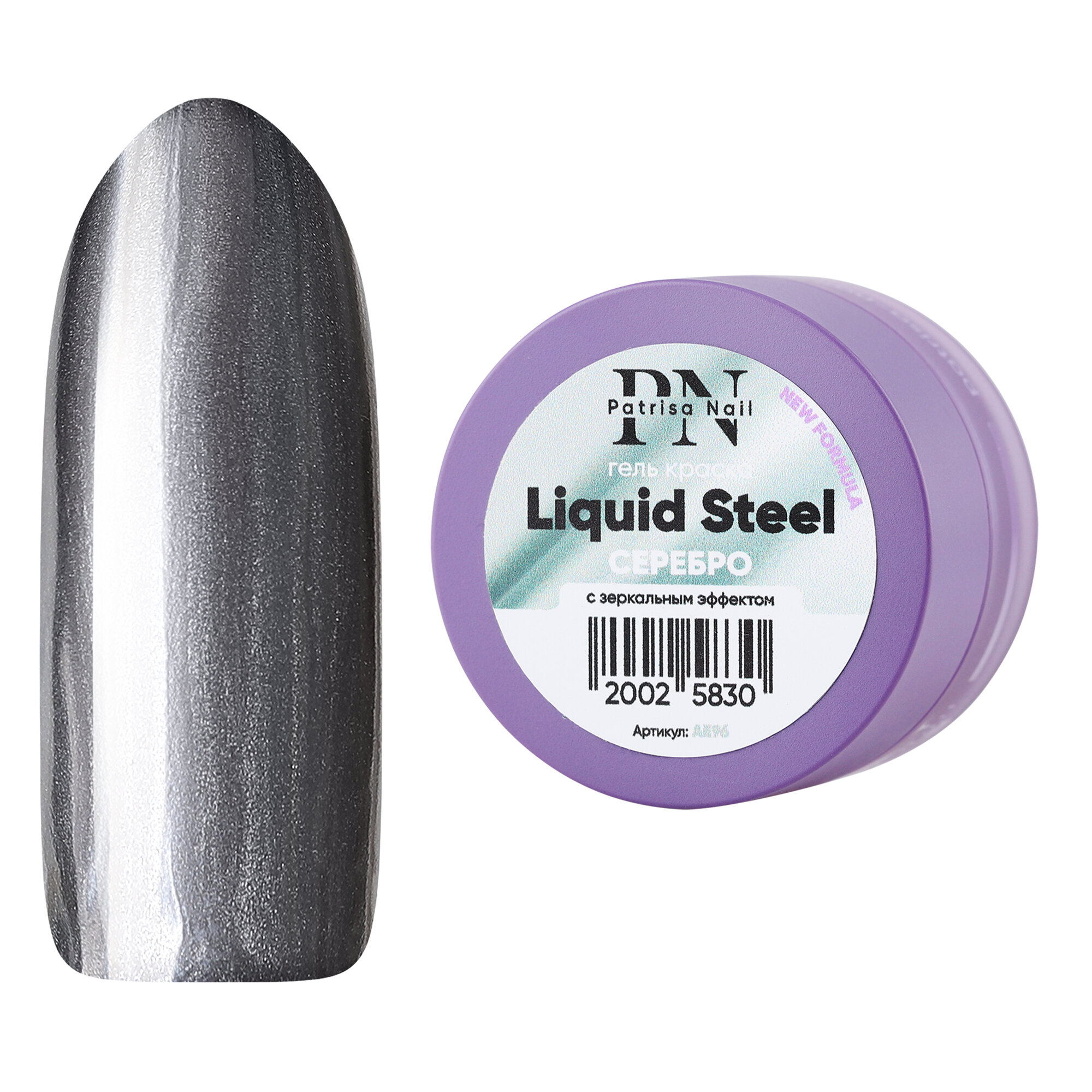 Гель-краска для дизайна ногтей серебро с зеркальным эффектом Patrisa Nail Liquid Steel AE96 5 гр