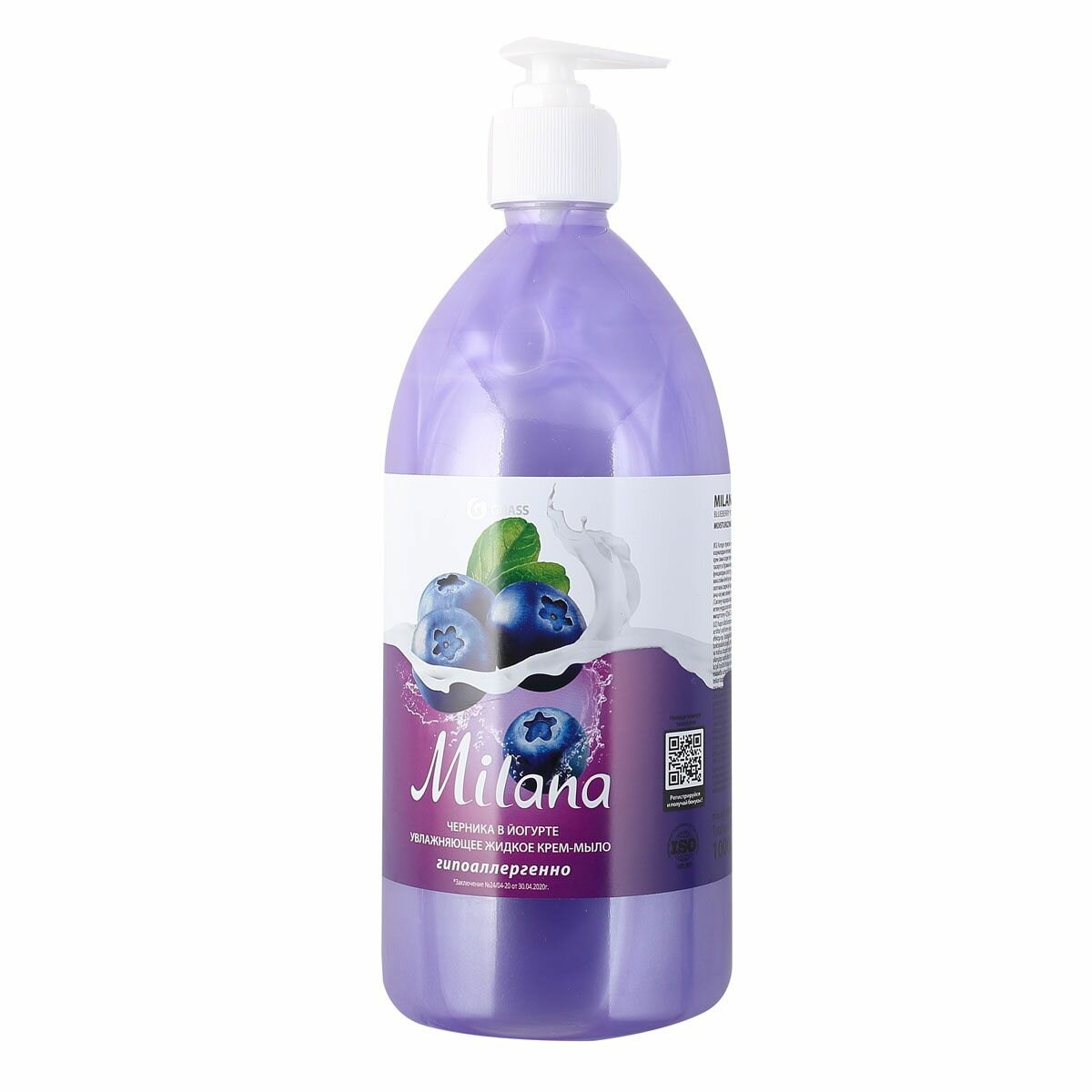 Жидкое крем-мыло Grass "Milana. Черника в йогурте", с дозатором, 1 л