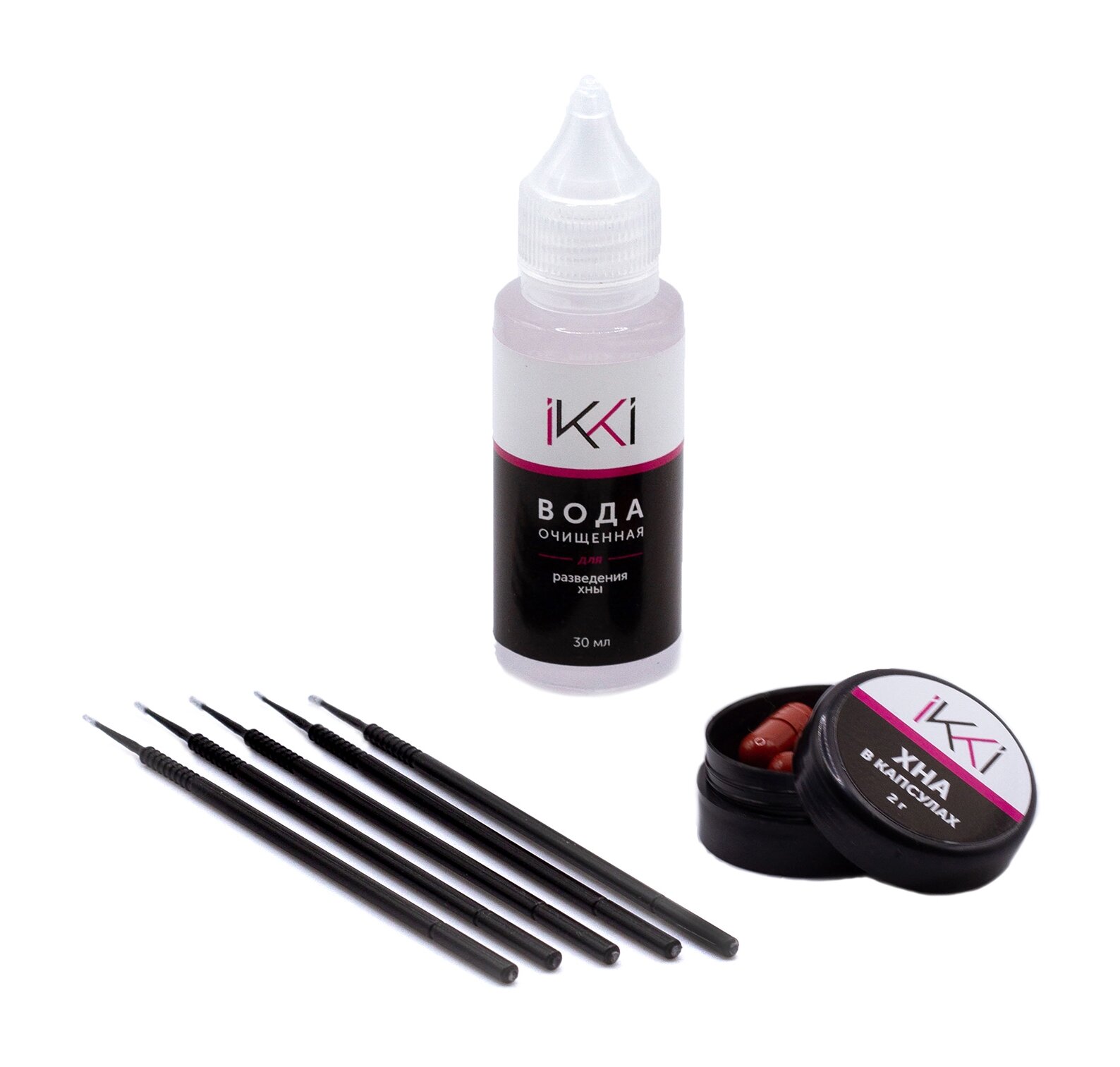 Купить Набор для домашнего окрашивания бровей Хной IKKI Home, темно-коричневый (хна в капсулах, белая коробочка)