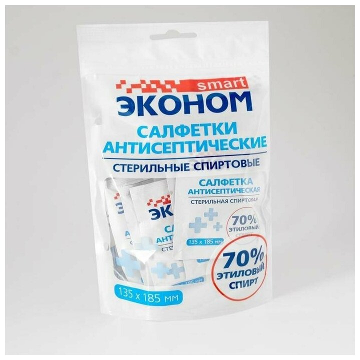 Салфетка влажная Эконом Smart антисептическая стерильная спиртовая ZIP-LOC, 135*185мм 7359116