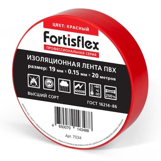 Изолента ПВХ FORTISFLEX 19 ммх0.15 ммх20 м красная 71234
