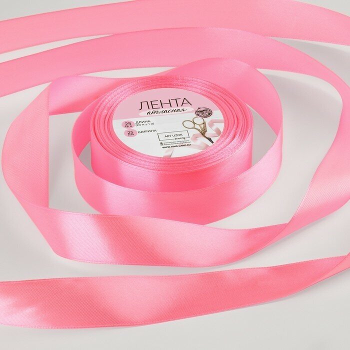 Арт Узор Лента атласная, 25 мм x 23 ± 1 м, цвет ярко-розовый №05 интересное: