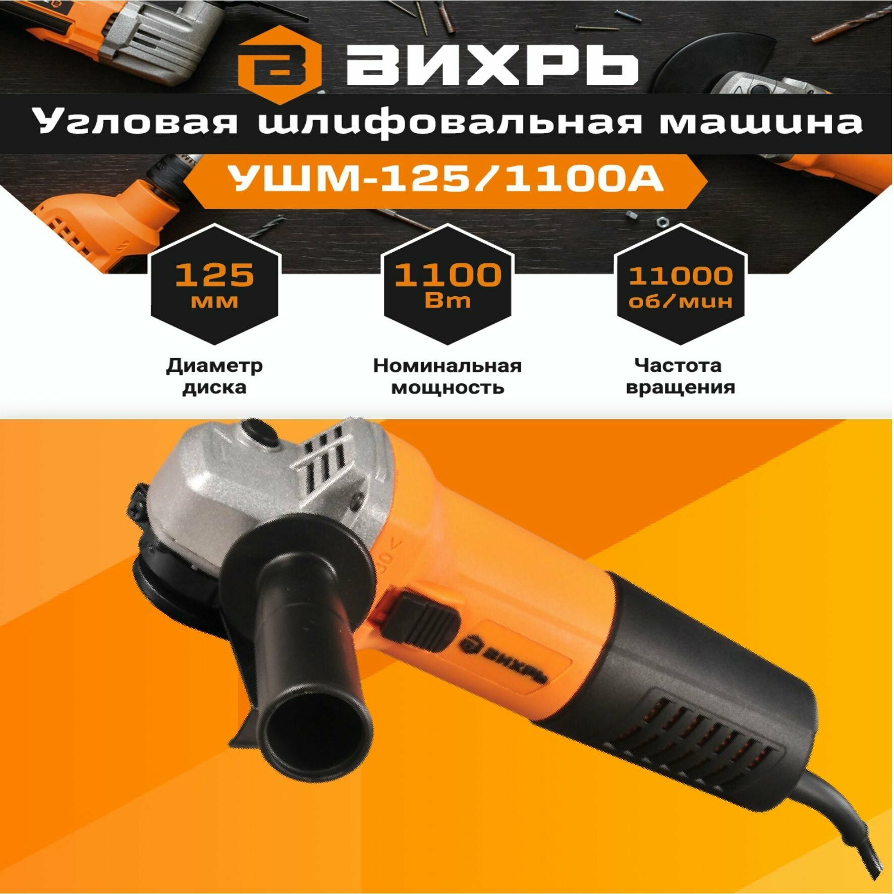 Акция! Углошлифовальная машина УШМ-125/1100А Вихрь