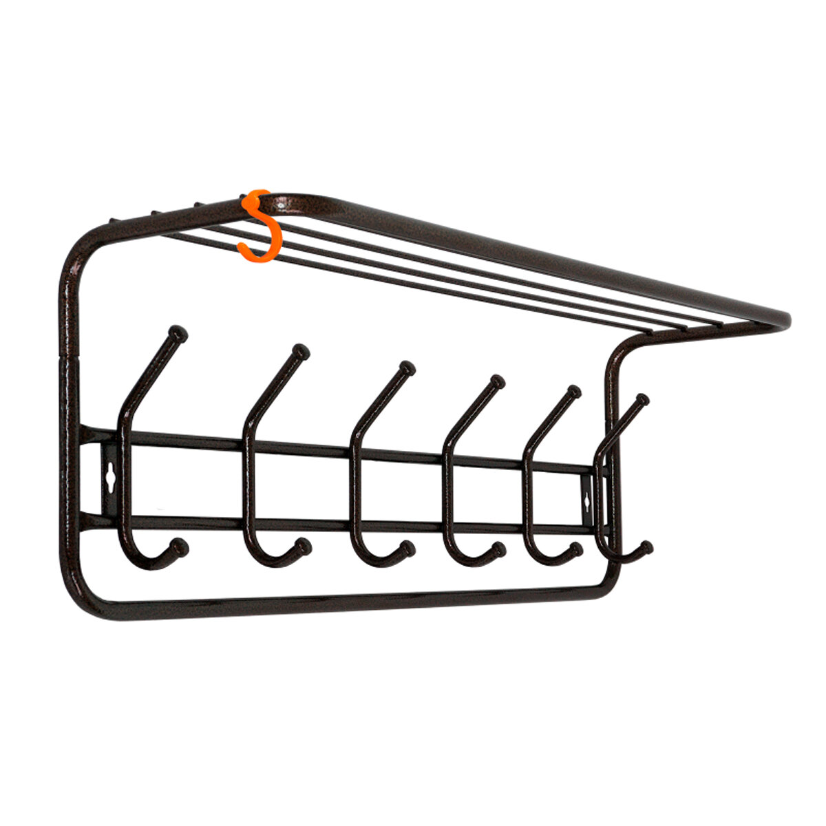 Вешалка настенная с полкой "ВСП7", 265х725х220 мм, 6 крючков, металл, черная, ВСП 7 Ч