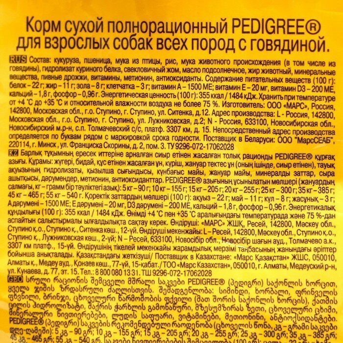 10240862/10230942/10113885 Педигри сухой корм для взрослых собак собак всех пород Говядина 2.2кг