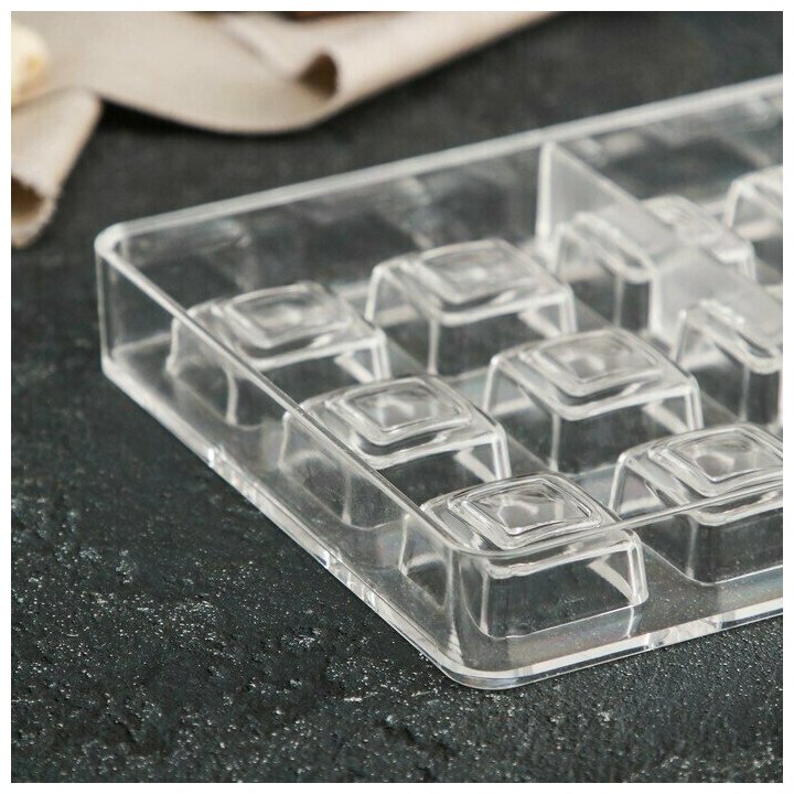 Форма для шоколада «Тоффи. Квадрат», 21 ячейка, 27,5x13,5x2,5 см, ячейка 2,5x1,5 см