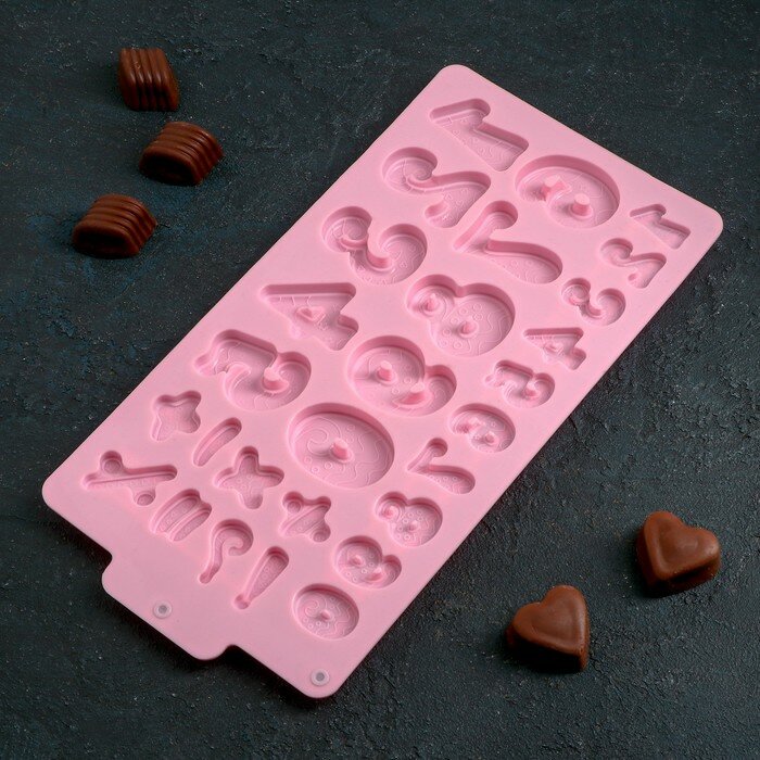 Форма для льда и кондитерских украшений Доляна «Цифры», 30,2×16 см, 28 ячеек, цвет микс интересное:
