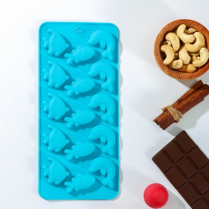 Купить Форма для льда и кондитерских украшений Доляна «Подводный мир», 21×10×1 см, 15 ячеек, цвет микс