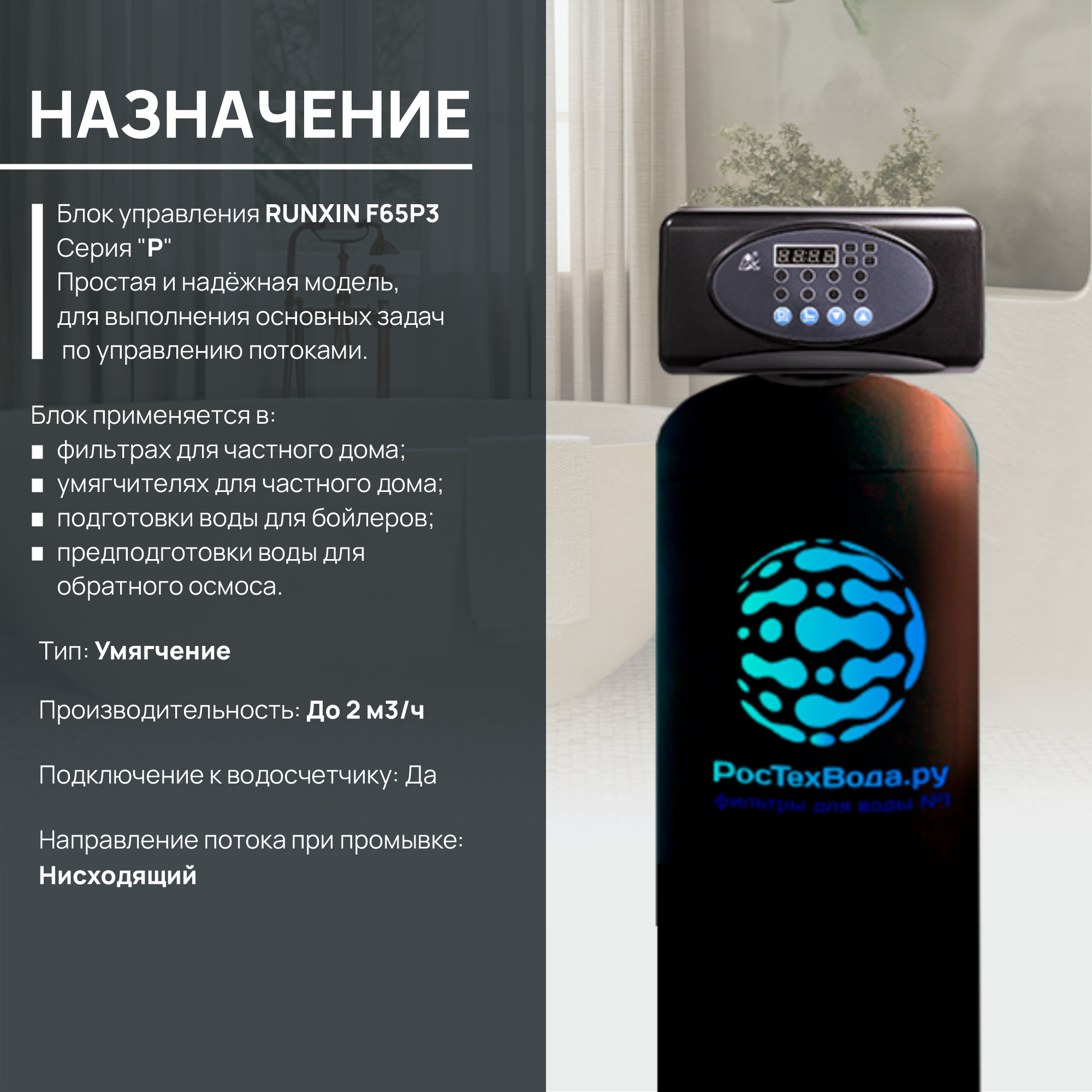 Блок управления RUNXIN TM. F65P3 - умягч. с в/сч, до 2,0 м3/ч интересное: