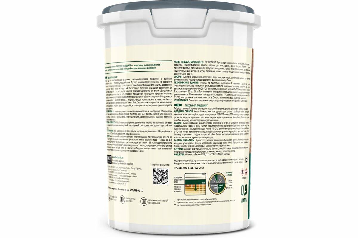 Защитное покрытие для древесины Ландшафт Текстурол 9 л сосна шелковисто-глянцевая