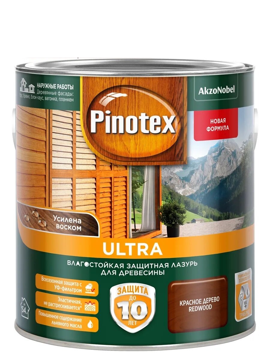 Лазурь PINOTEX ULTRA защитная влагостойкая для древесины красное дерево 2,5 л
