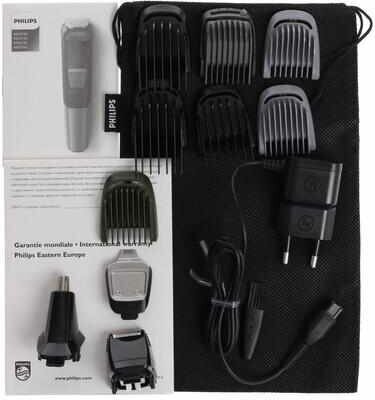 | Дополнительная информация | 2 гребня для щетины; регулируемый гребень для бороды; 3 гребня для волос; гребень для тела; триммер для стрижки в носу и ушах; насадка-бритва; триммер для контуров; щеточка для чистки |