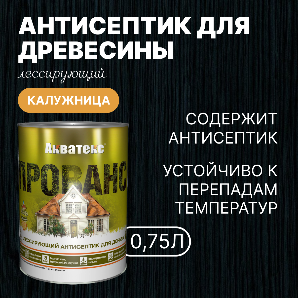 Антисептик для дерева Акватекс Прованс, лессирующий, полуматовый, 0,75 л, венге