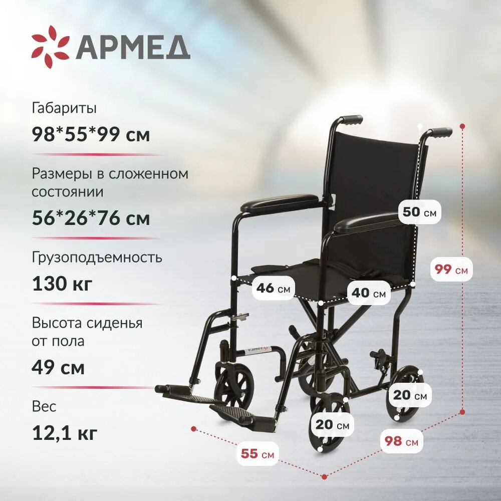 Кресло-каталка коляска для инвалидов Армед 2000 (ширина сиденья 46см) интересное: