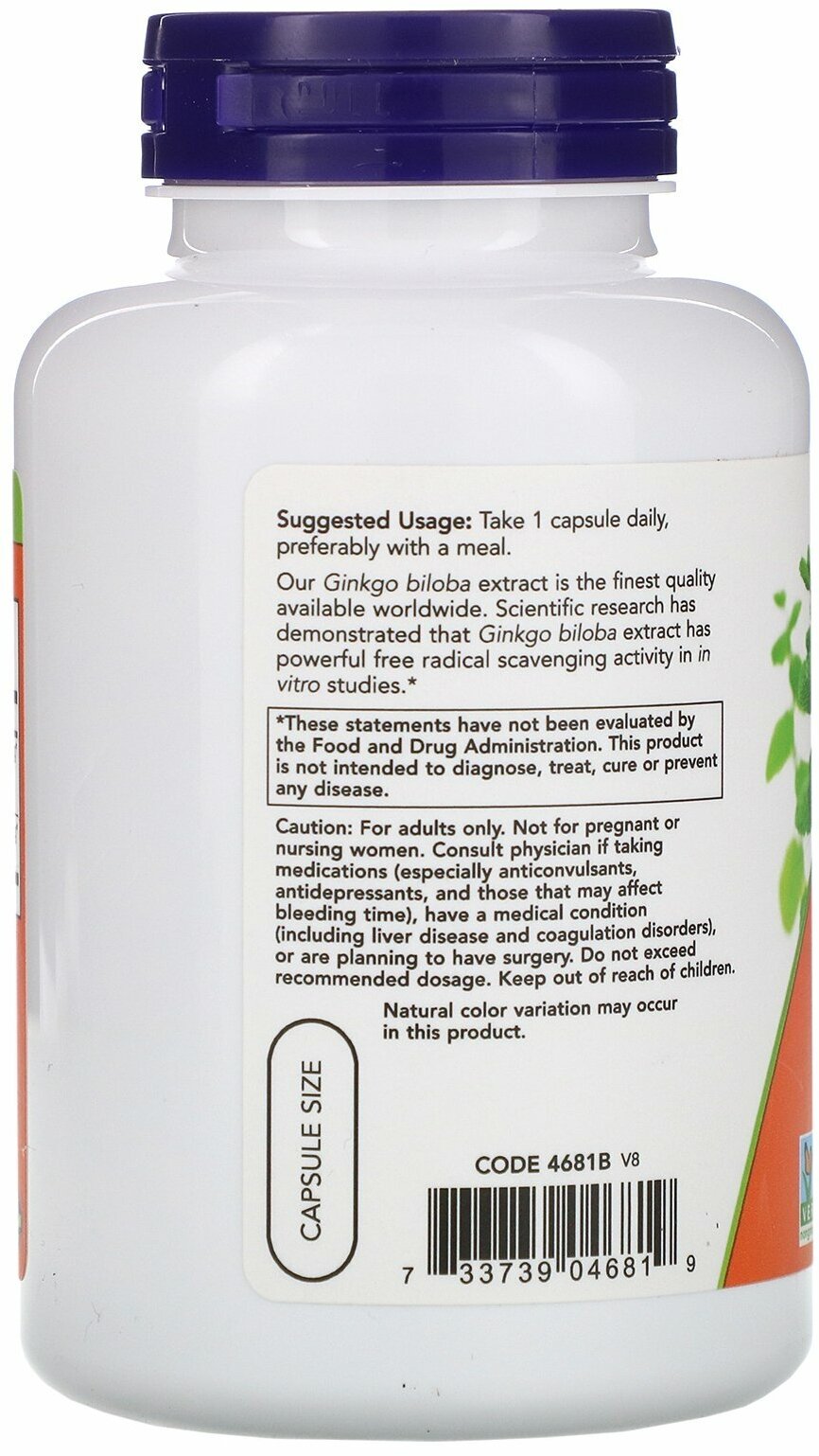 NOW Ginkgo Biloba 120мг (100 вегкапсул)