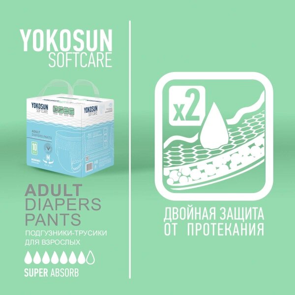 YokoSun / ЙокоСан - впитывающие трусы для взрослых, M, 10 шт.