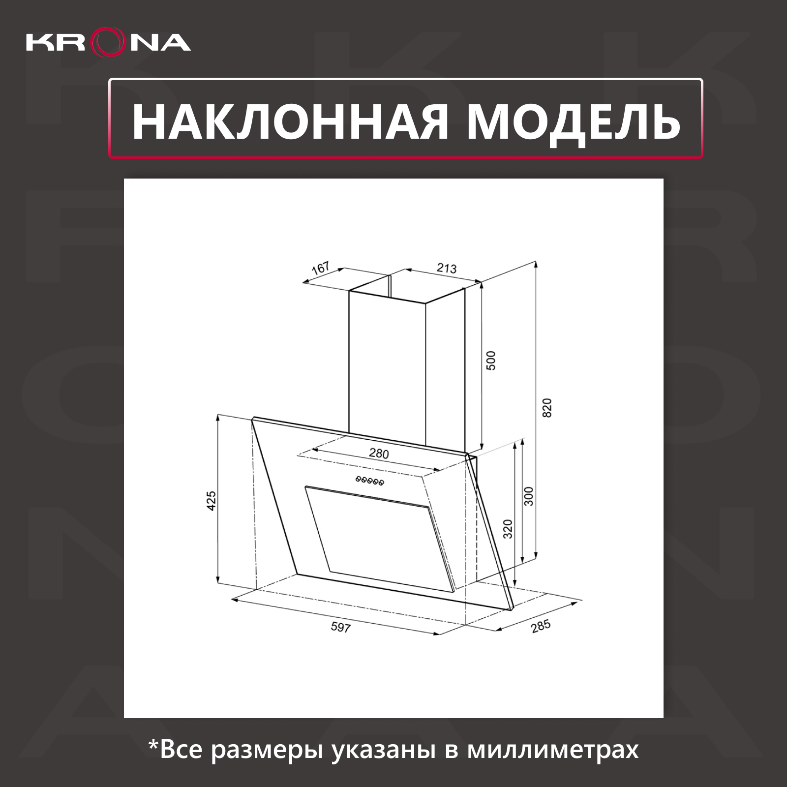 Наклонная вытяжка Krona FIONA 600 BLACK PB, цвет корпуса black, цвет окантовки/панели черный
