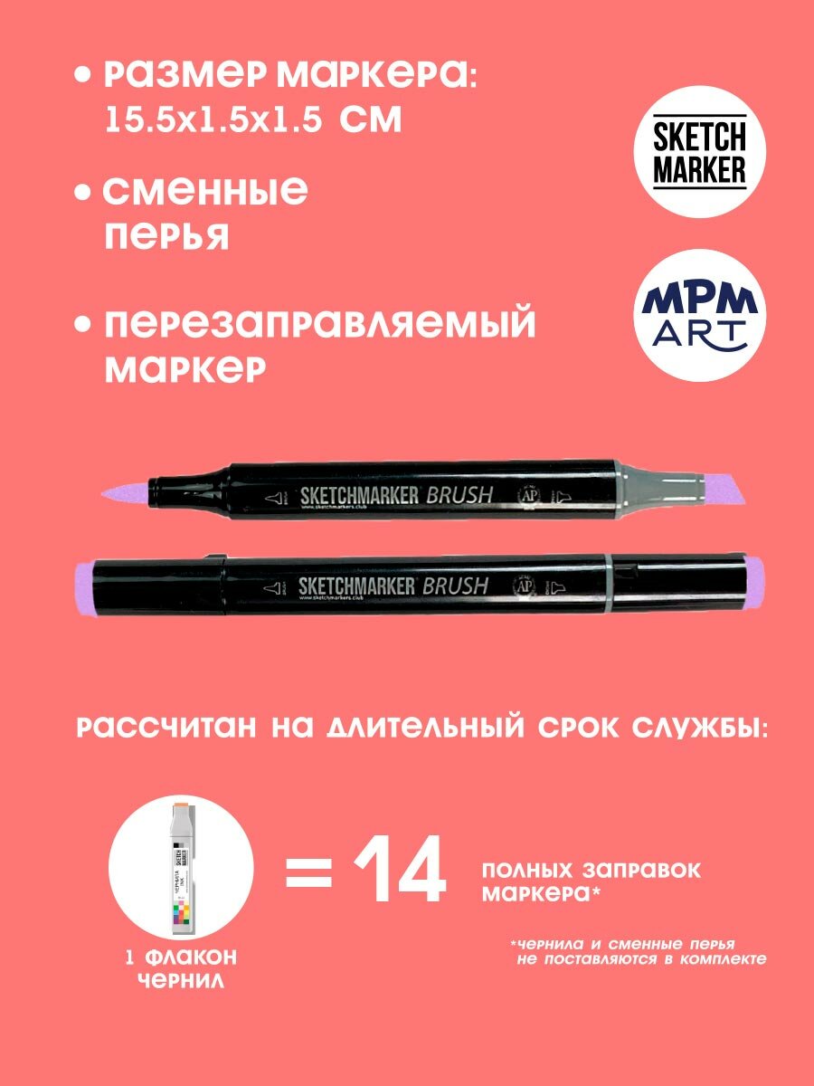 Двусторонний заправляемый маркер SKETCHMARKER Brush Pro на спиртовой основе для скетчинга, цвет: R14 Морозная слива