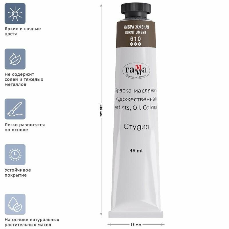 Купить Краска масляная художественная Гамма "Студия", 46мл, туба, умбра жженая