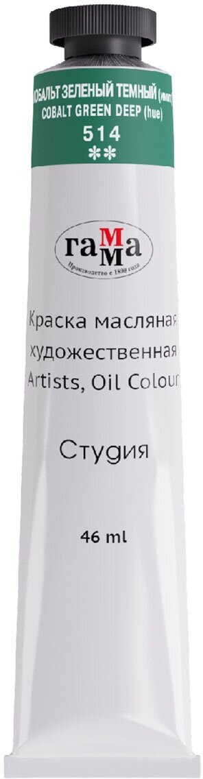 Купить Краска масляная художественная Гамма "Студия", 46мл, туба, кобальт зеленый темный (имит)