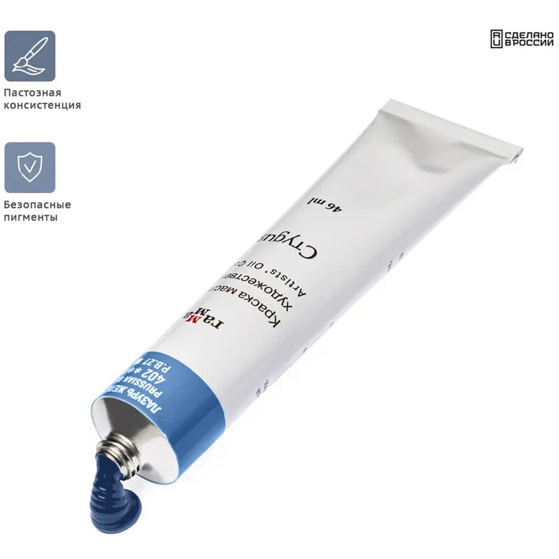 Краска масляная в тубе 46 мл, "Студия", №404 ультрамарин светлый