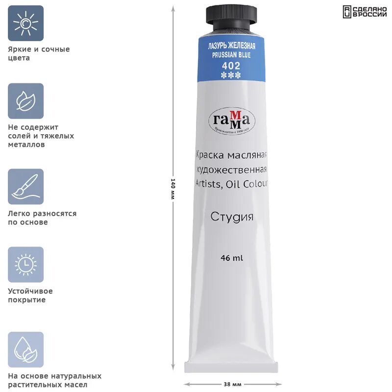 Краска масляная Гамма "Студия", 46мл, лазурная