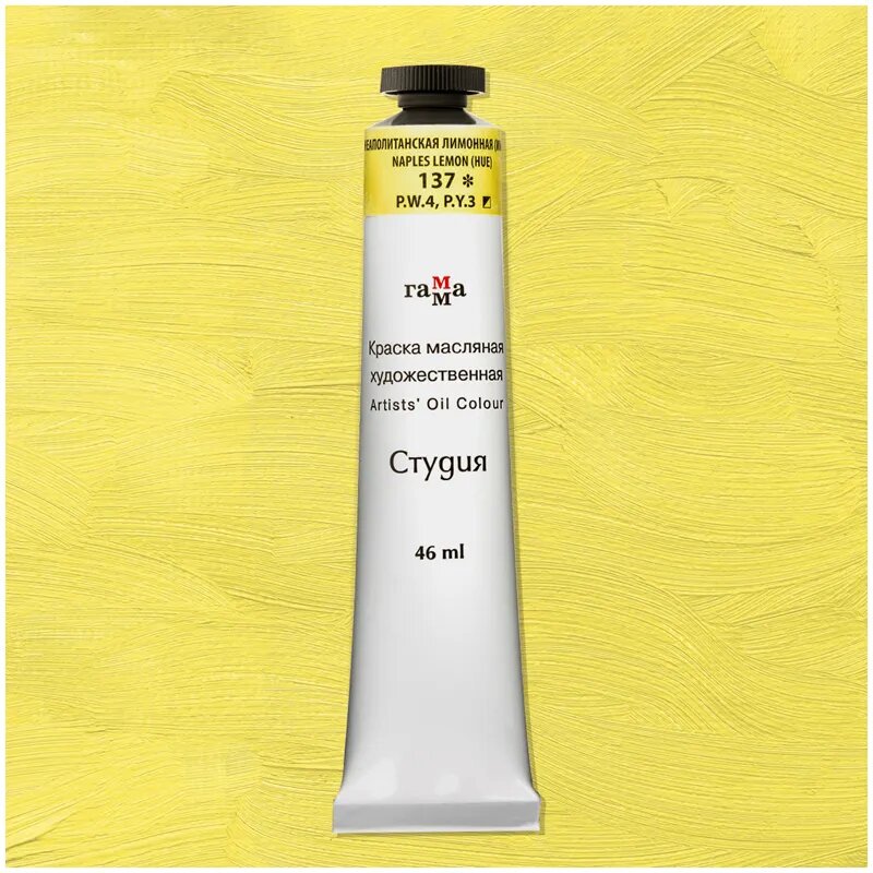 Купить Краска масляная художественная Гамма "Студия", 46мл, туба, неаполитанская лимонная (имит)