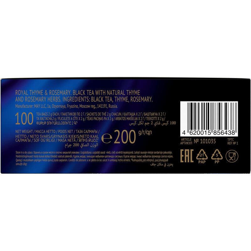 Купить Чай RICHARD "Royal Thyme & Rosemary", черный с чабрецом и розмарином, 100 пакетиков по 2 г, 100647