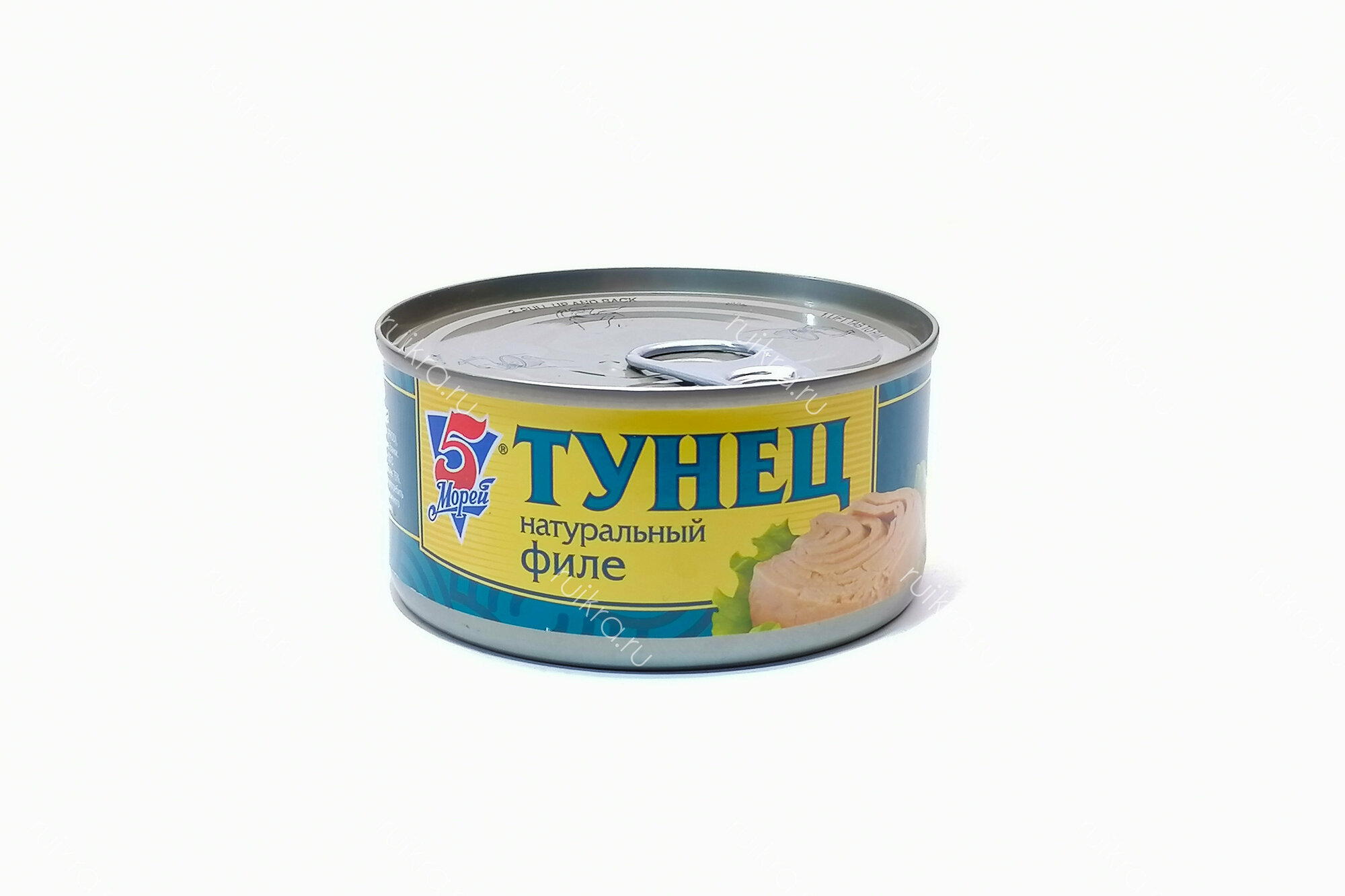 Консервы рыбные 5 Морей - Тунец филе натуральная, 185 г