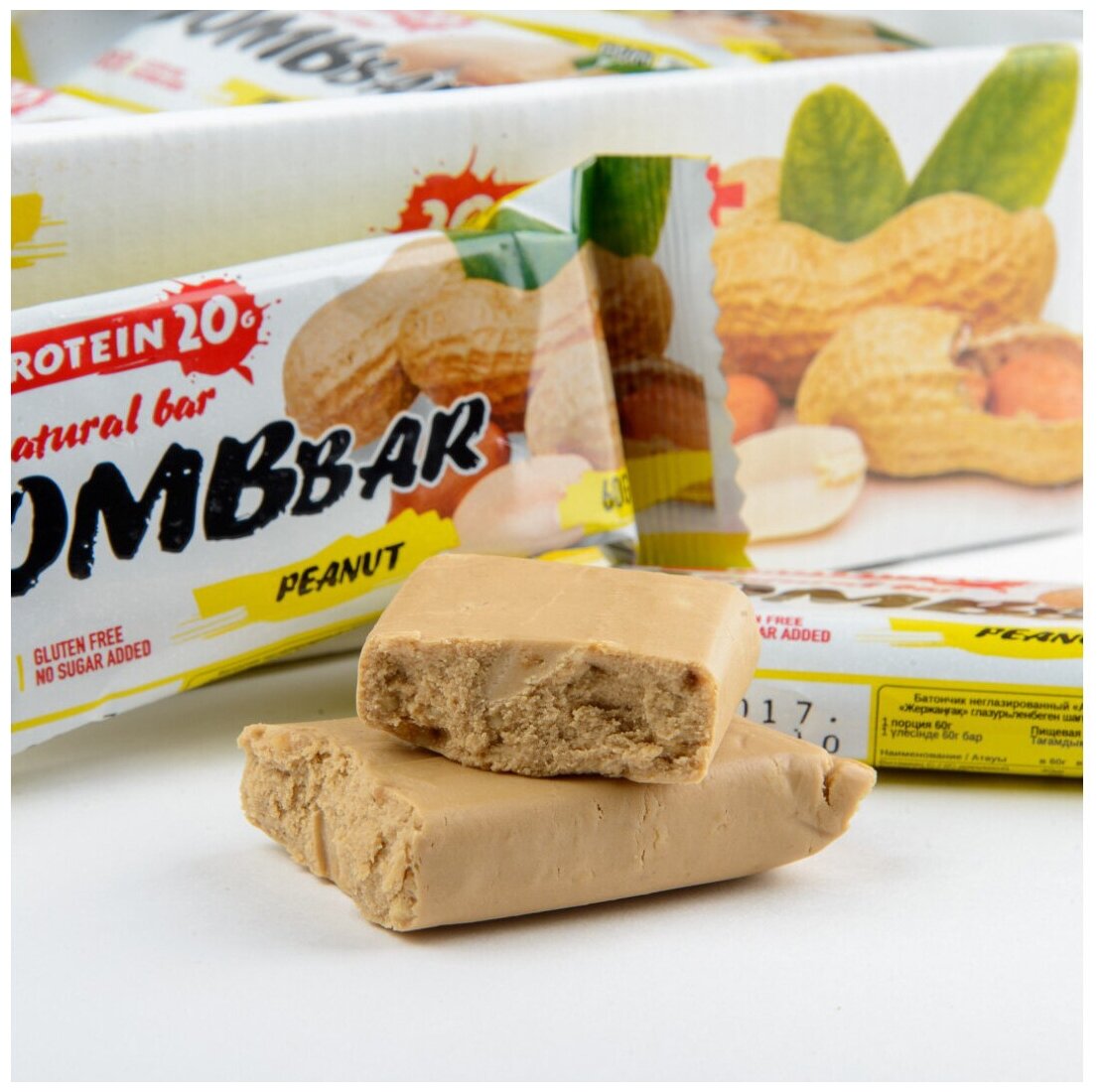 Bombbar Набор батончиков неглазированных протеиновых, вкус арахис 20 штук по 60 г