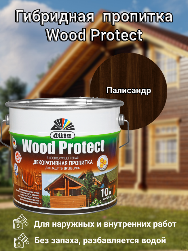 Пропитка декоративная Dufa Wood Protect для защиты древесины палисандр 9л