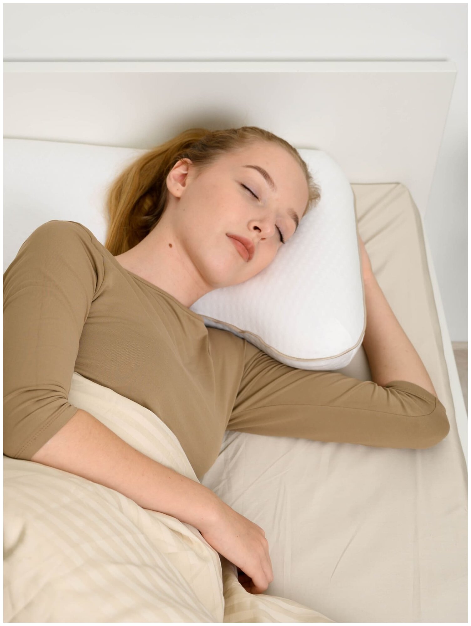 | Дополнительная информация | подушка используется для сна исключительно на боку: разместите подушку любой стороной вверх у изголовья кровати, длинной стороной с выемкой для плеча перпендикулярно шее, расположите голову для сна в удобном положении, плечи не должны размещаться на подушке, не допускается размещение подушки по диагонали; рекомендуемая длина плеча для сна на подушке: 13-17 см; рекомендуется сухая чистка; наволочку стирать без отжима; медицинское изделие РУ № РЗН 2021/14994 |