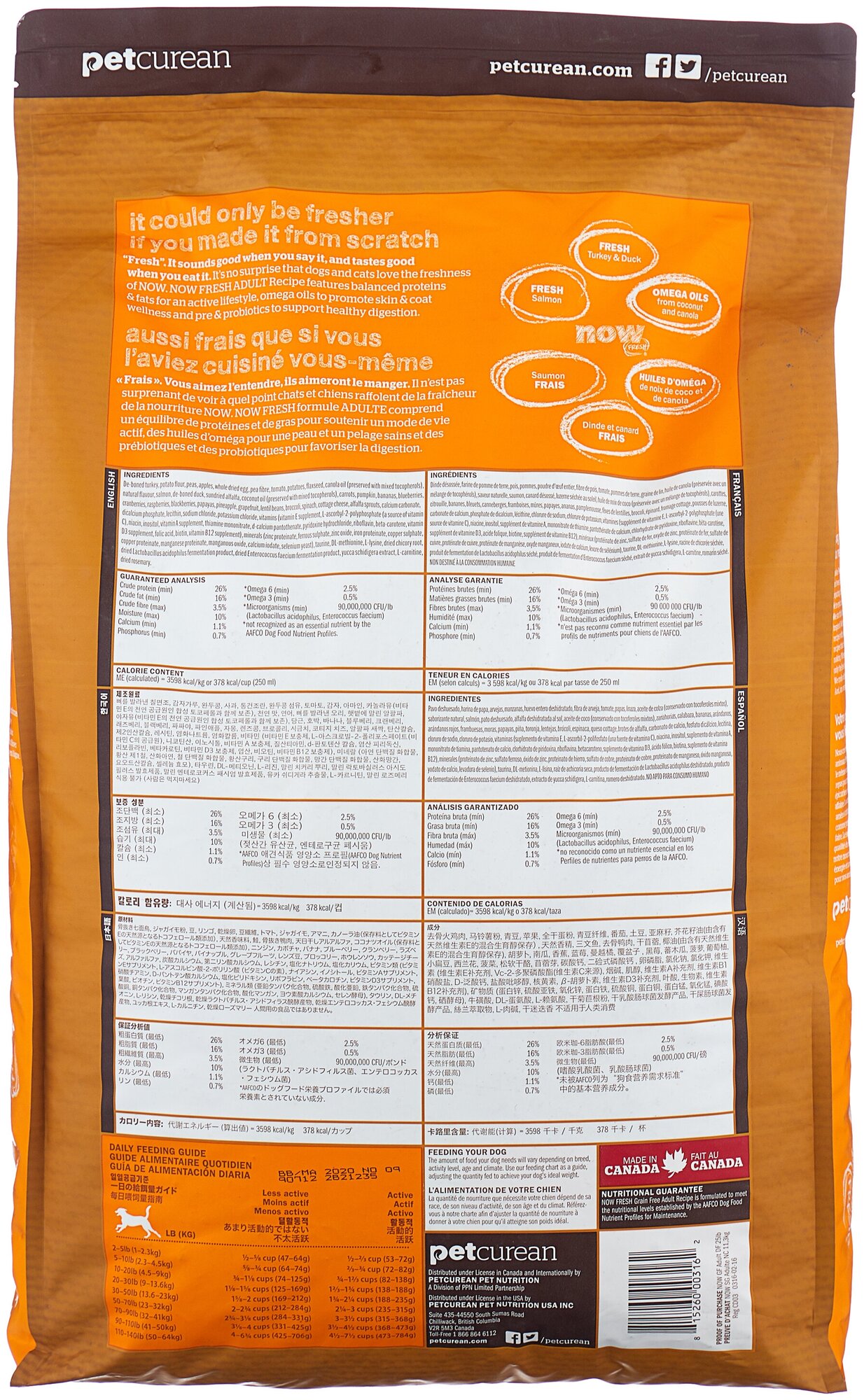 Now Fresh Adult - Сухой беззерновой корм для взрослых собак, с индейкой, лососем и уткой (5.44 кг)
