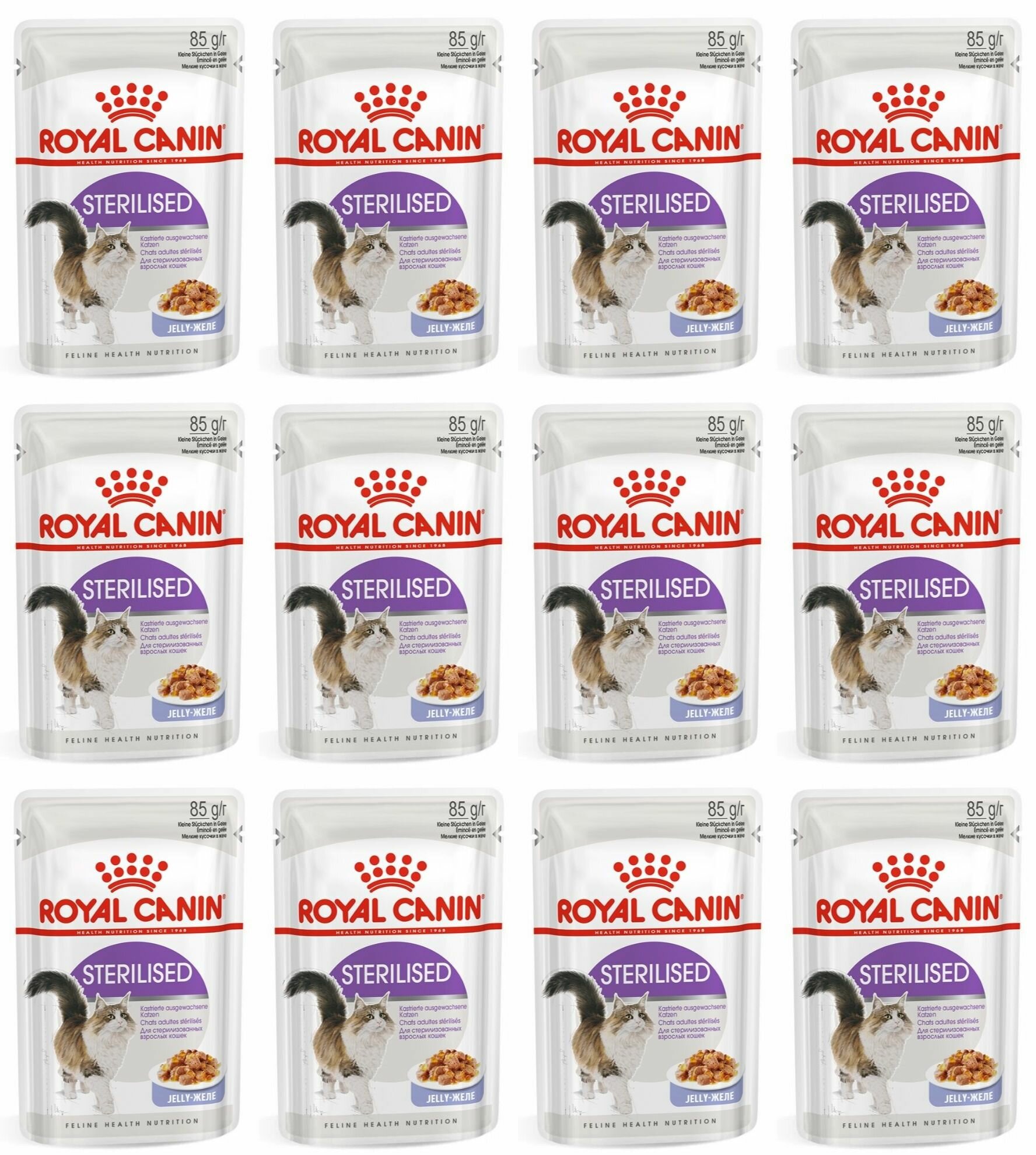 Влажный корм желе для кошек Royal Canin Sterilised (Стерилайзд) для стерилизованных кошек в возрасте от 1 до 7 лет, 24x0.085кг